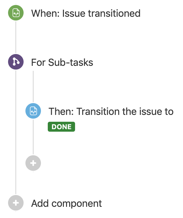 Вы можете убедиться, что подзадачи и их родительские задачи синхронизированы, и один из способов - использовать правила ветвления. Например, когда вы решаете последнюю подзадачу по задаче, вы можете разрешить родительскую. С помощью Automation for Jira легко синхронизировать связанные задачи.