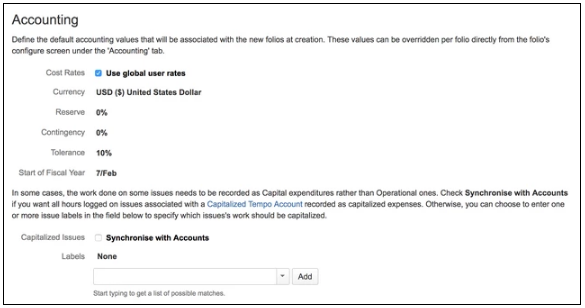 Глобальная конфигурация Tempo Budgets позволяет вам указать параметры конфигурации, которые обеспечат конфигурацию по умолчанию для новых созданных вами фолио. Чтобы получить доступ к глобальной конфигурации Tempo Budgets, перейдите на страницу «Управление портфолио» ("Manage Portfolios") и нажмите «Глобальные настройки» ("Global Settings") в правом верхнем углу страницы. Вы также можете получить доступ к глобальной конфигурации через конфигурацию надстройки: перейдите в «Администрирование»> «Надстройки» ("Administration > Add-ons"), а затем нажмите Tempo Budgets > «Глобальные настройки» ("Global Settings") на панели навигации слева.