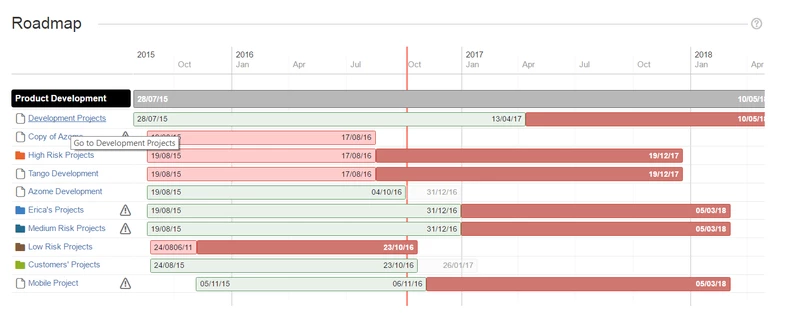 В этом разделе отображается шкала времени, иллюстрирующая план всех фолио, включенных в это портфолио. В нем указаны запланированные временные рамки для каждого фолио и портфолио, а также предполагаемый срок их выполнения в соответствии с текущим графиком выполнения.