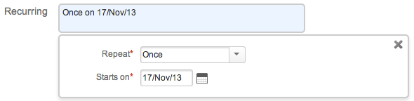 Один из двух вариантов: День месяца: выплаты происходят в день месяца, указанный в дате, указанной в поле «Начинается» ("Starts on"). (например, каждый 7-й день месяца). День недели: выплаты происходят в день недели, указанный в дате, указанной в поле «Начинается» ("Starts on"). (например, каждый второй понедельник месяца). |