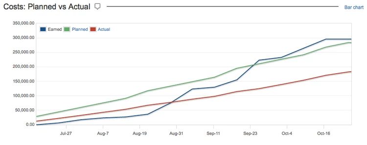 [Затраты: только финансовые] Фактическая стоимость одной единицы поля заработанной стоимости (или час исходной оценки в случае фолио без EVM). Он рассчитывается путем деления фактической стоимости на текущий момент на сумму поля заработанной стоимости для всех заработанных задач фолио (или завершенных исходных оценок). Пример: дан фолио с завершенными задачами на общую сумму 50 очков истории и стоимостью 100 000 долларов на текущий момент, тогда фактическая стоимость единицы = 100 000 долларов / 50 = 2 000 долларов. |