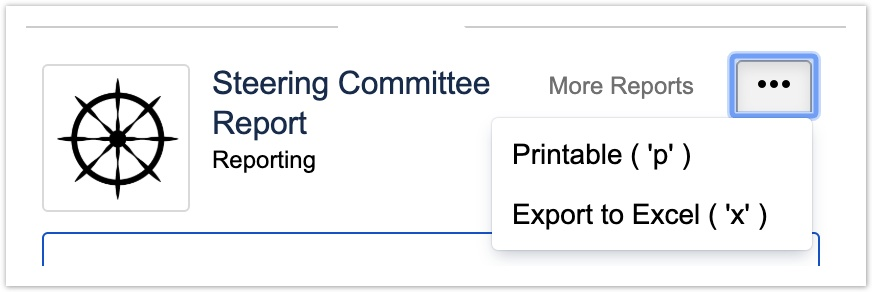 Чтобы экспортировать в Excel, выберите пункт «Экспорт в Excel» ("Export to Excel") в меню действий отчета в правом верхнем углу. Экспорт немного отличается в зависимости от того, визуализируете ли вы фолио или руководящий комитет портфолио.