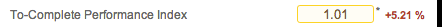Индекс производительности до завершения (TCPI) определяет эффективность (CPI), которая должна быть достигнута при выполнении оставшейся работы, чтобы проект уложился в бюджет по завершении. Он рассчитывается путем деления оставшейся работы (BAC - EV на сегодняшний день) на оставшийся бюджет (BAC - AC на сегодняшний день). Значение больше единицы указывает, что производительность должна улучшиться. TCPI не определен, если BAC равен 0 или если AC больше, чем BAC. |