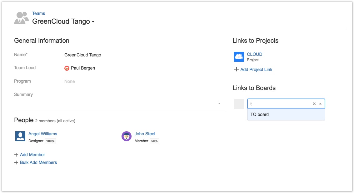Вы можете связать команду с несколькими проектами и досками. Вы также можете связать разные команды с одними и теми же проектами или досками.