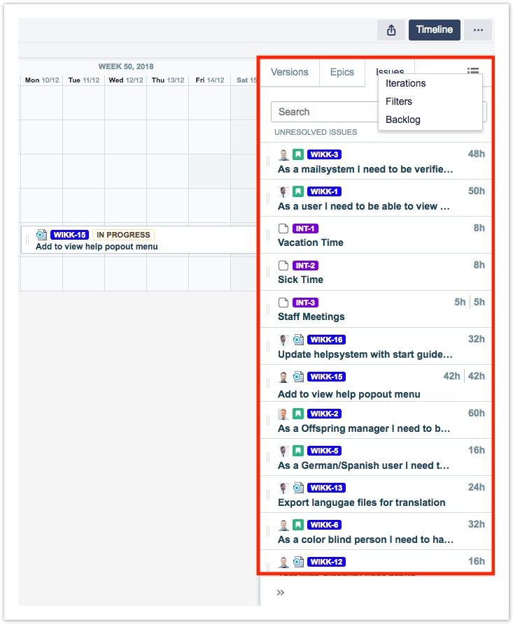 По материалам Tempo Planner: Viewing Unresolved Issues on the Team Timeline