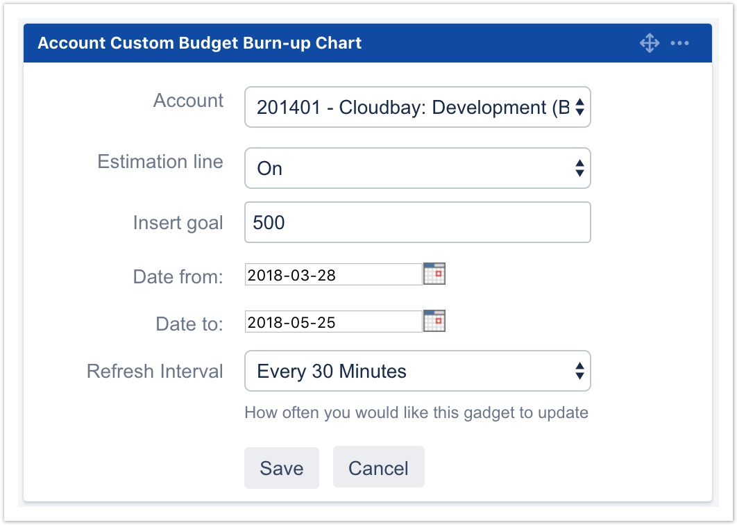 По материалам Tempo Server: Account Custom Budget Burn-up Chart Gadget