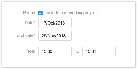 3. Если вы выберете опцию Период ("Period"), вы можете записать время по задаче за период времени.