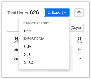 Экспорт отчетов - Tempo Planner for Server
