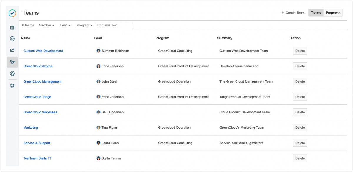 Программы представляют собой группы команд и полезны для организации множества небольших команд одновременно. Каждая команда может быть назначена только для одной программы, но программа может содержать более одной команды. Каждой программе может быть назначен менеджер программ.