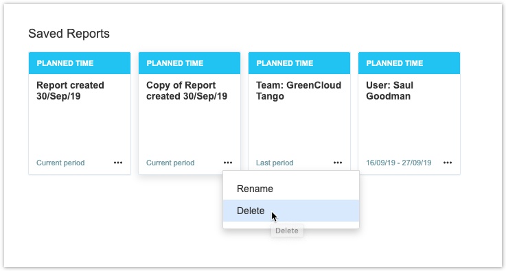 - Создание и доступ к сохраненным отчетам - Tempo Planner for Server