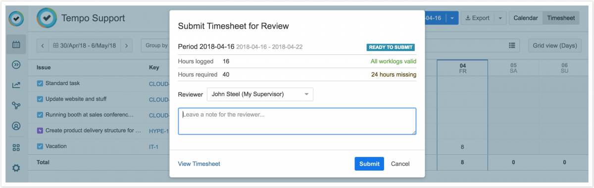 По материалам Tempo Server: Submitting Your Timesheet