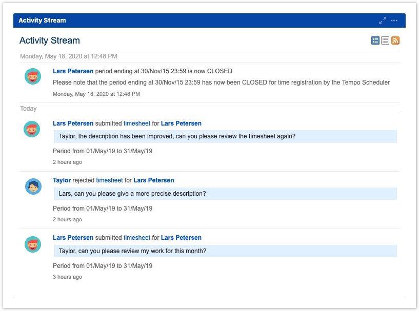 По материалам Tempo Server: Tempo Activity Stream Provider