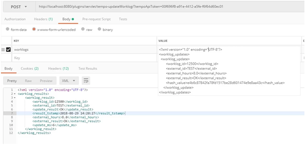 Пример ввода в UpdateWorklogs - POST-ed с параметром worklogs